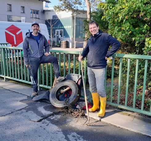 Am Vormittag waren wir entlang des Fischbaches unterwegs und haben dabei so einiges aus dem Wasser geholt. Neben typischem Müll kamen auch ungewöhnliche Fundstücke zum Vorschein – darunter Autoreifen, Matratzenteile, Teddybären oder auch Fahrradzubehör.